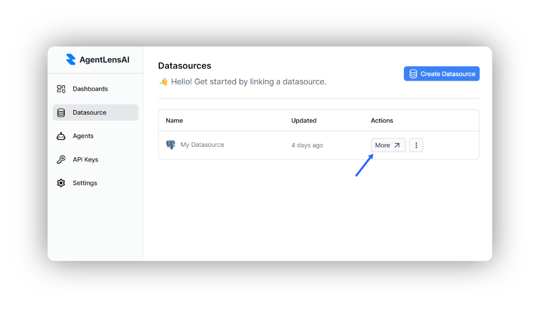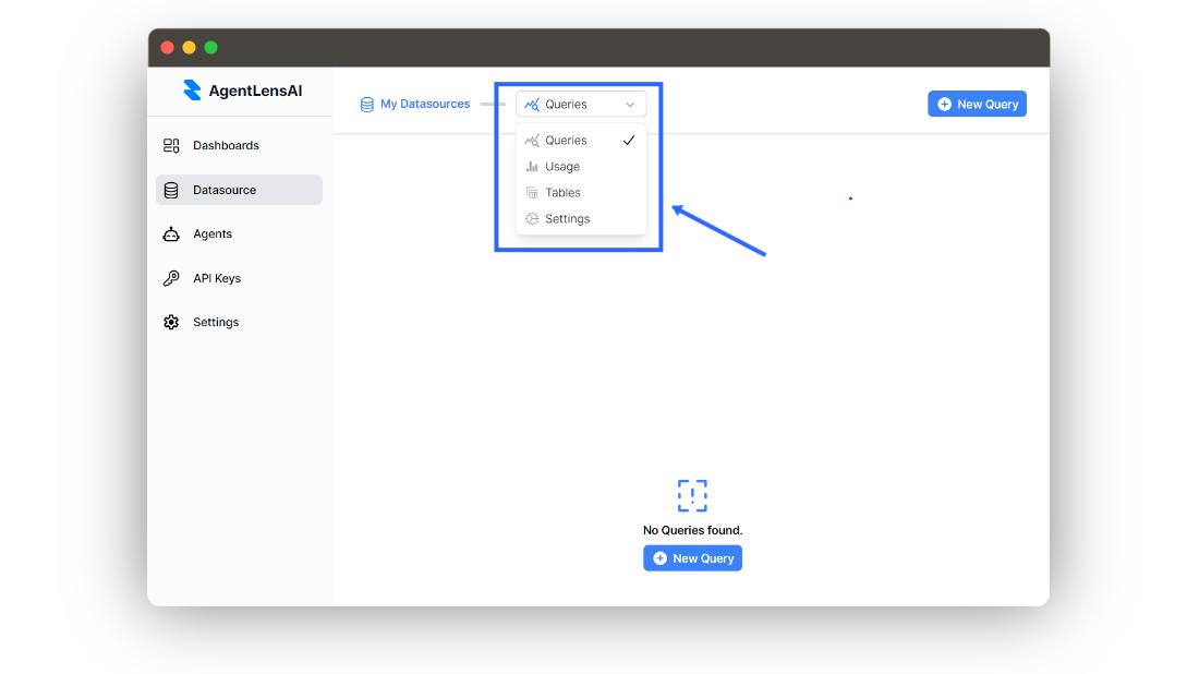 AgentLensAI allows you to explore more about your added datasources, which means that you can create, save and run queries on your datasource.
